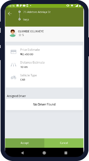 Accept a request and assign a driver to fulfil request. Monitor driver activities from your mobile app